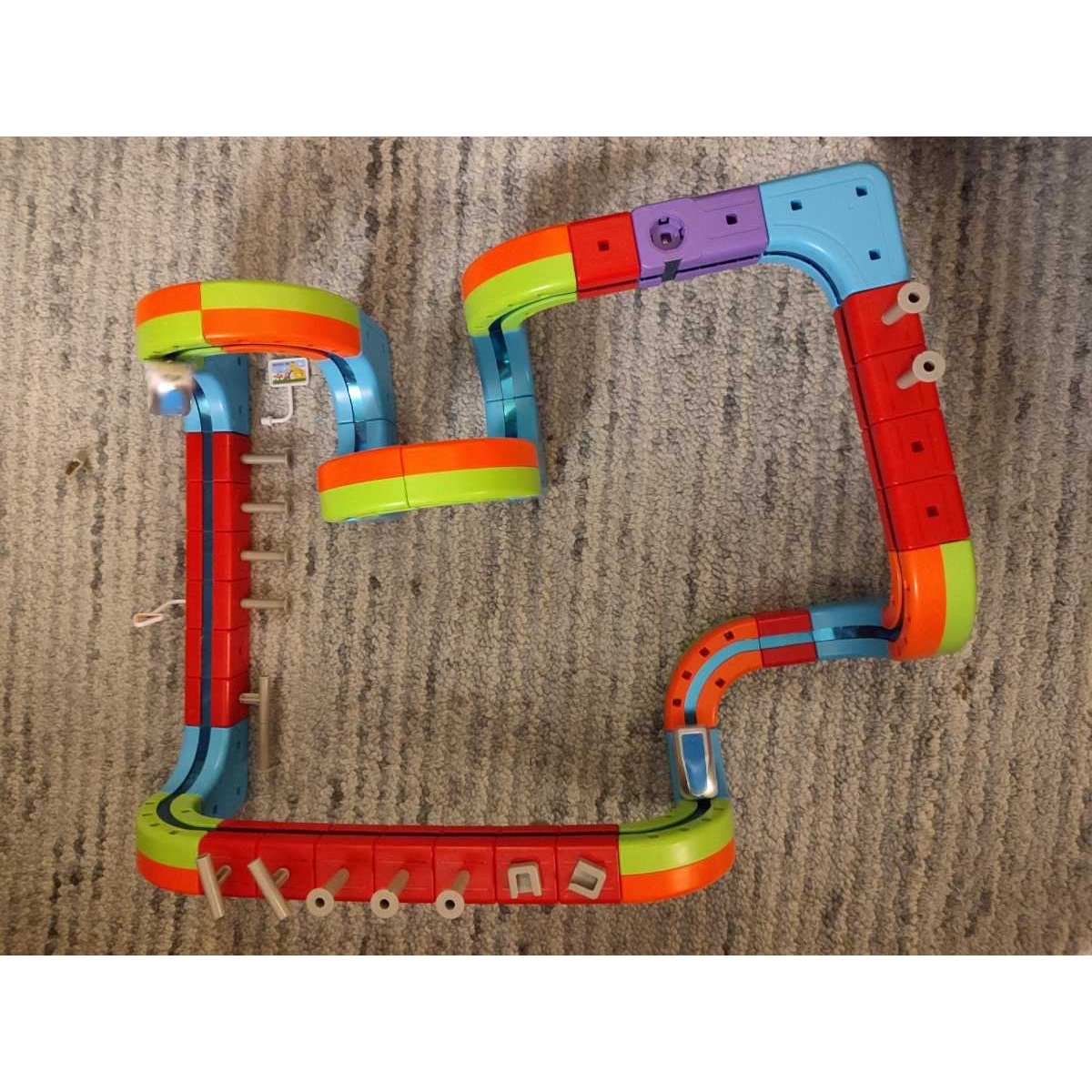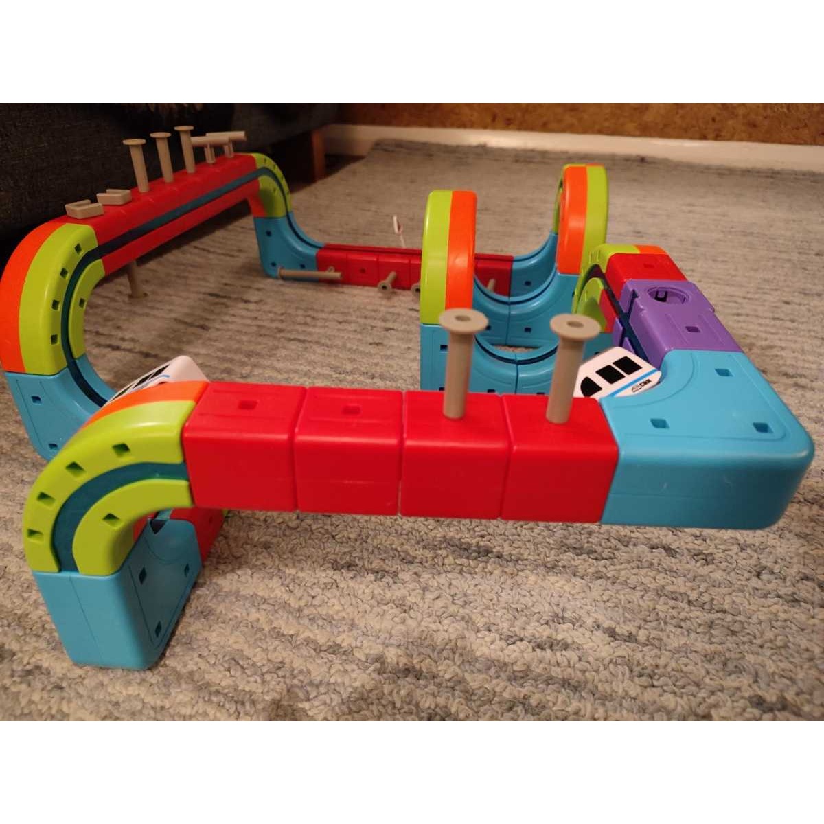 Multiple track configurations possible including circular orbits, intersections, multi-layer tracks, and continuous bends for dynamic play